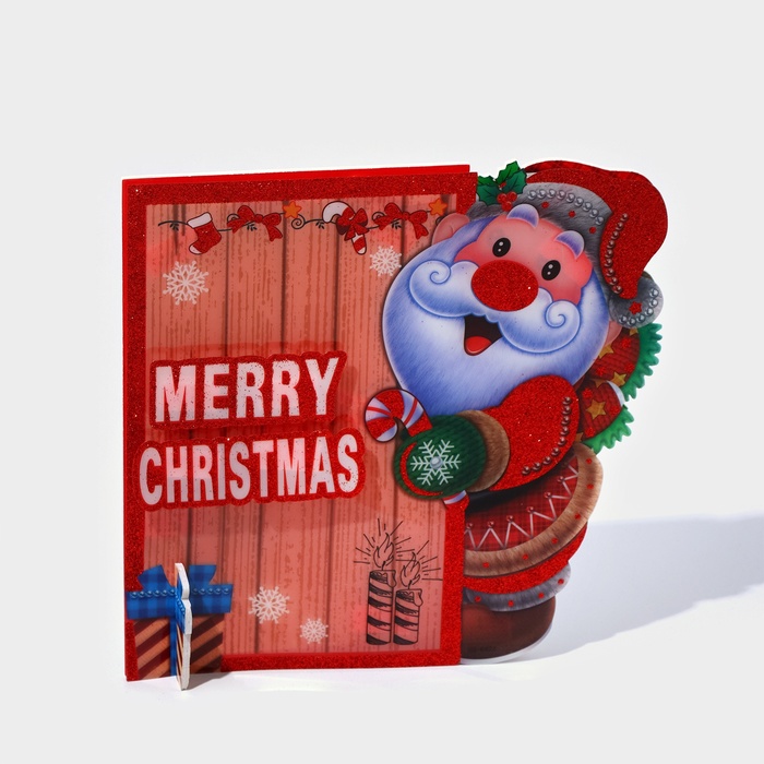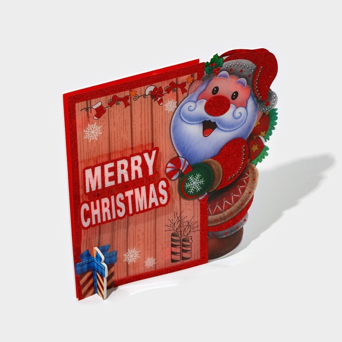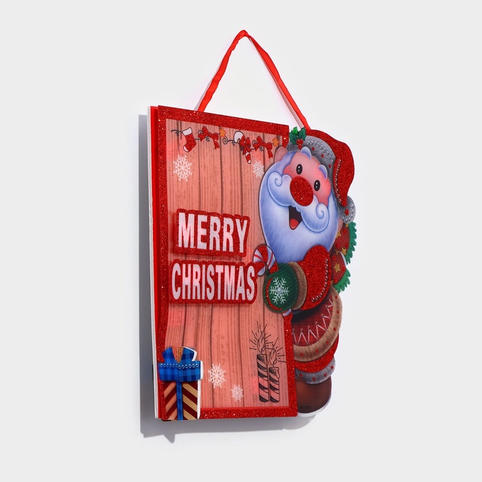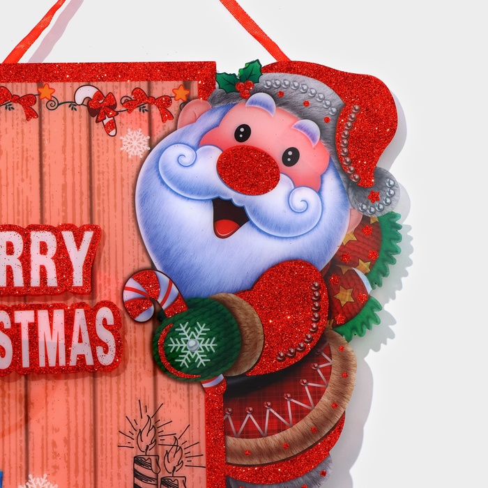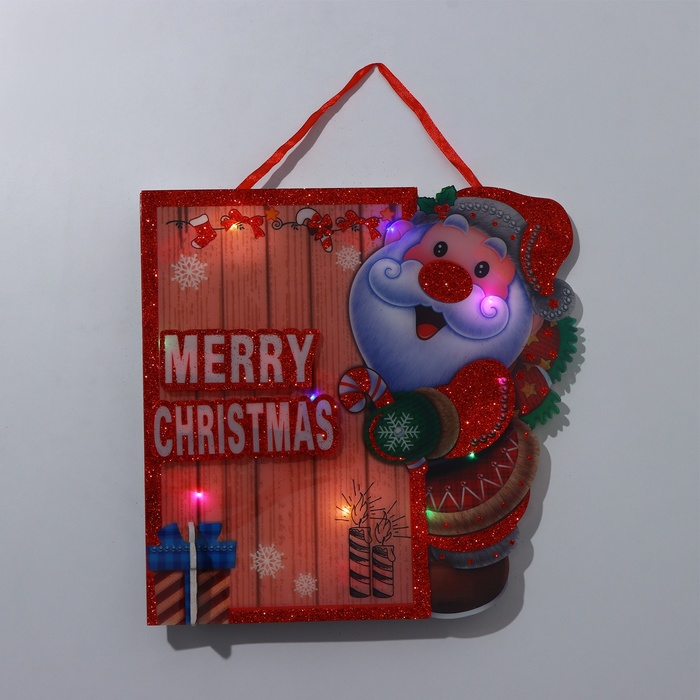 Новогоднее светящиеся украшение настенное «Дед мороз за дверью», подвеска, 27,5х27,5 см