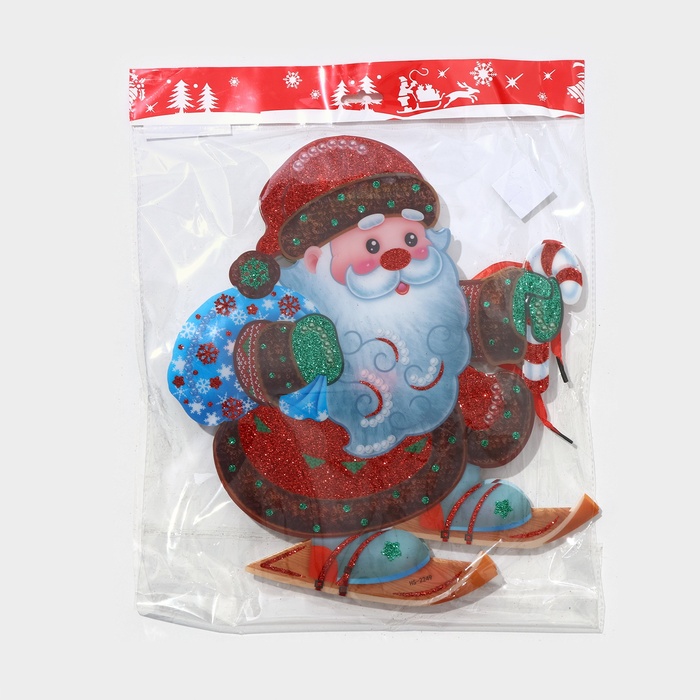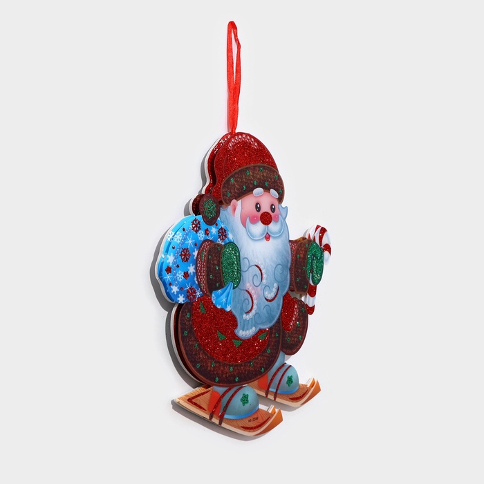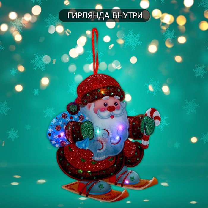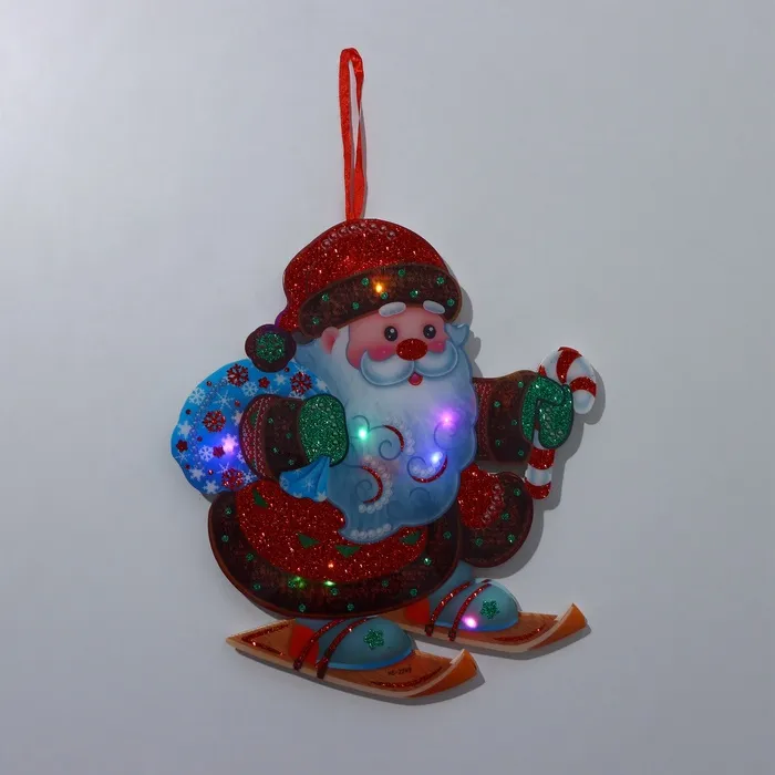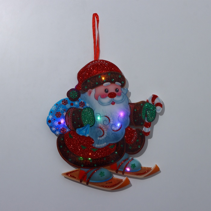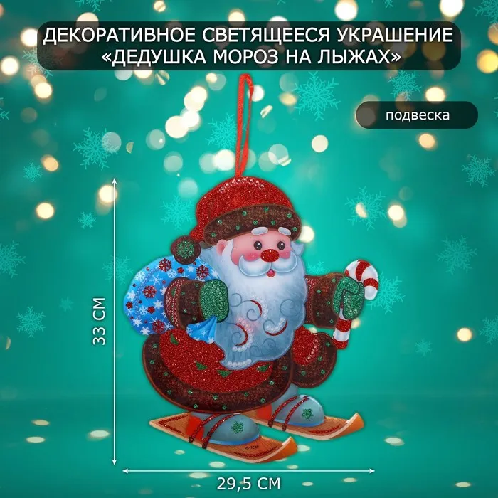 Новогоднее светящиеся украшение настенное «Дедушка мороз на лыжах», подвеска, 33х29,5 см — Характеристики