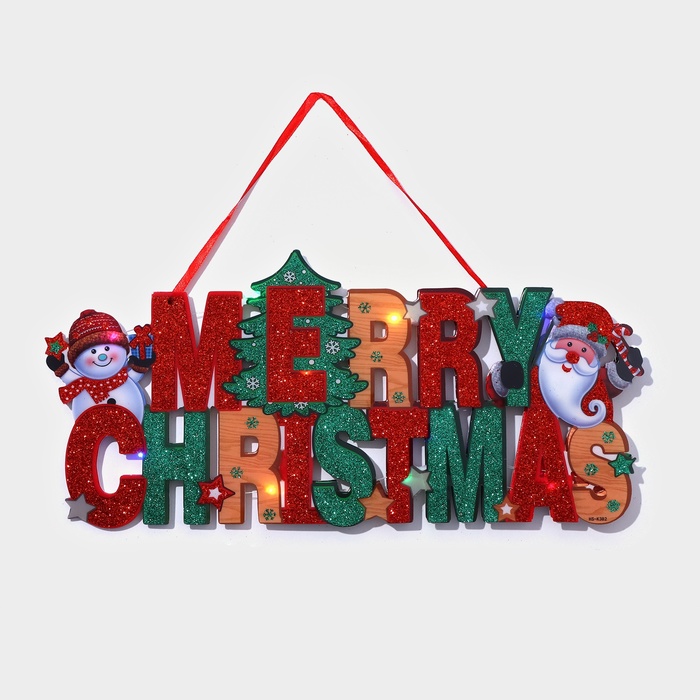 Новогоднее светящиеся украшение настенное «Merry Christmas», подвеска, 19х41 см