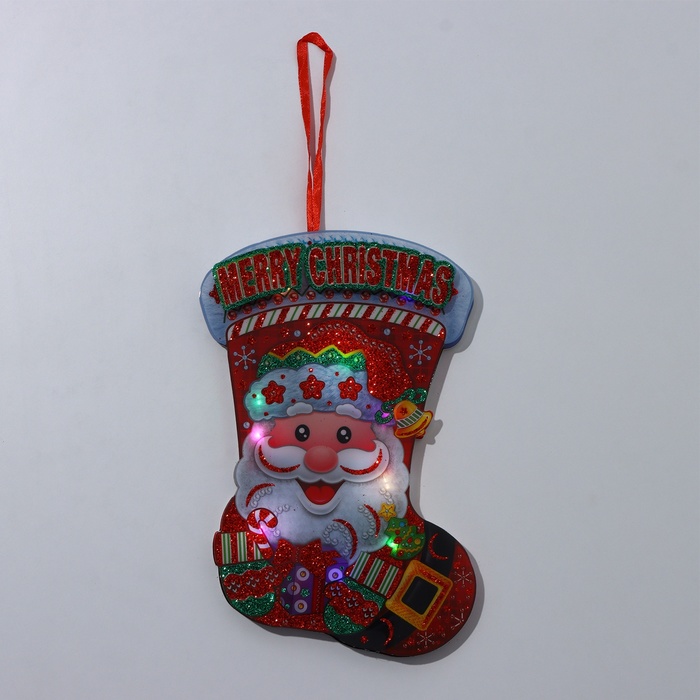 Новогоднее светящиеся украшение настенное «Новогодний носок», подвеска, 26х15,5 см