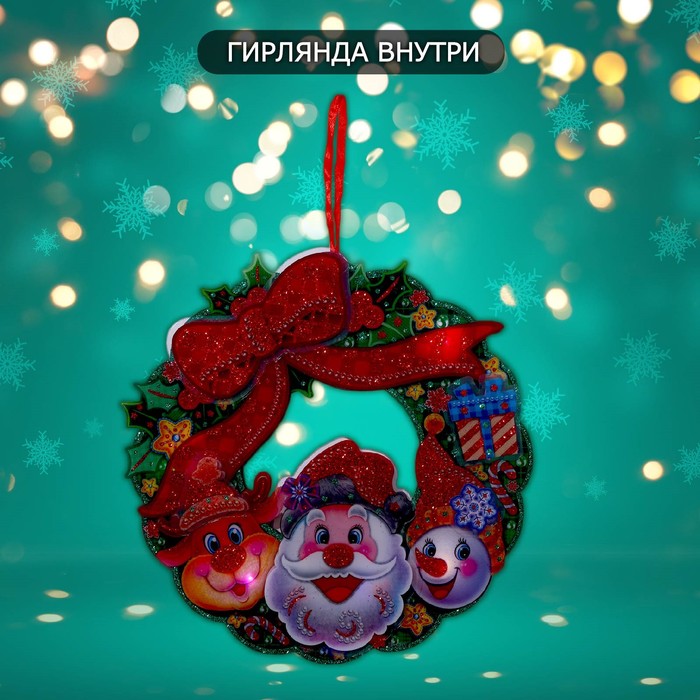 Новогоднее светящиеся украшение настенное «Новогодний венок», подвеска, 32х31 см