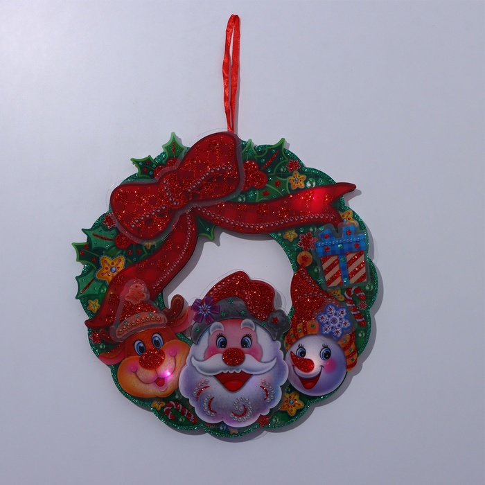 Новогоднее светящиеся украшение настенное «Новогодний венок», подвеска, 32х31 см — Характеристики