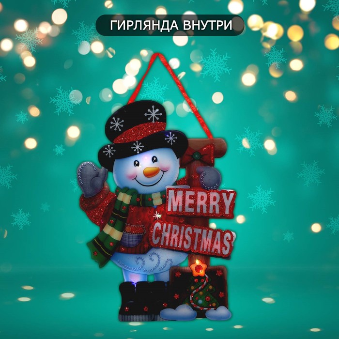 Новогоднее светящиеся украшение настенное «Снеговик», подвеска, 32х23 см — Характеристики