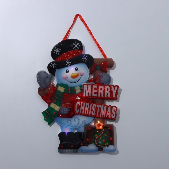 Новогоднее светящиеся украшение настенное «Снеговик», подвеска, 32х23 см