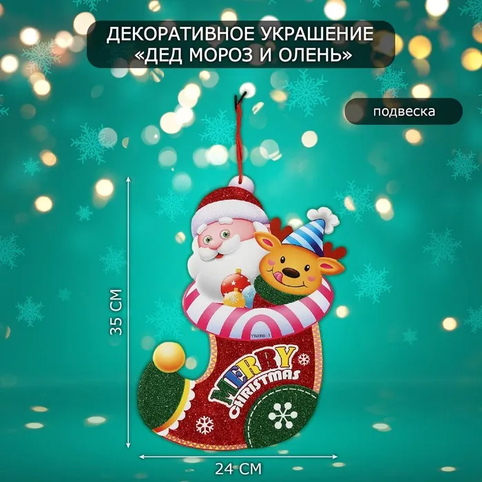 Новогоднее украшение настенное «Дед мороз и олень», подвеска, 35х24 см — Характеристики