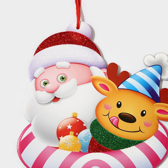 Новогоднее украшение настенное «Дед мороз и олень», подвеска, 35х24 см