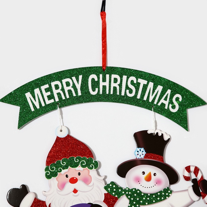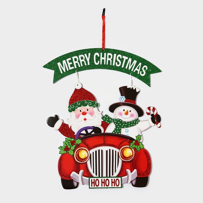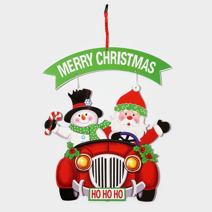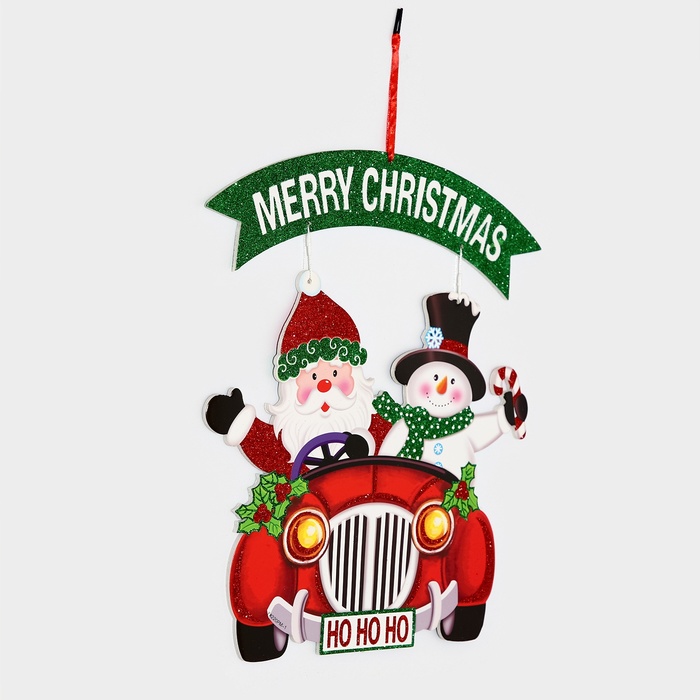 Новогоднее украшение настенное «Дед мороз и снеговик на автомобиле», подвеска, 40х34 см