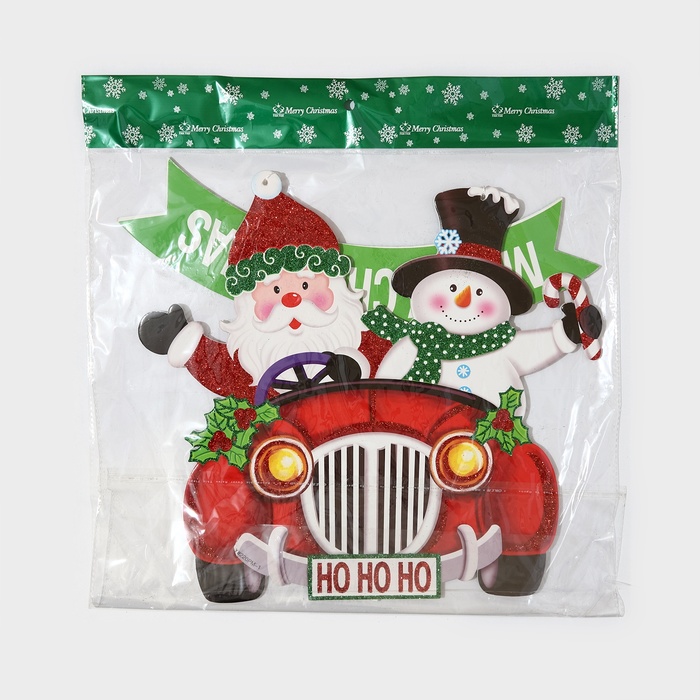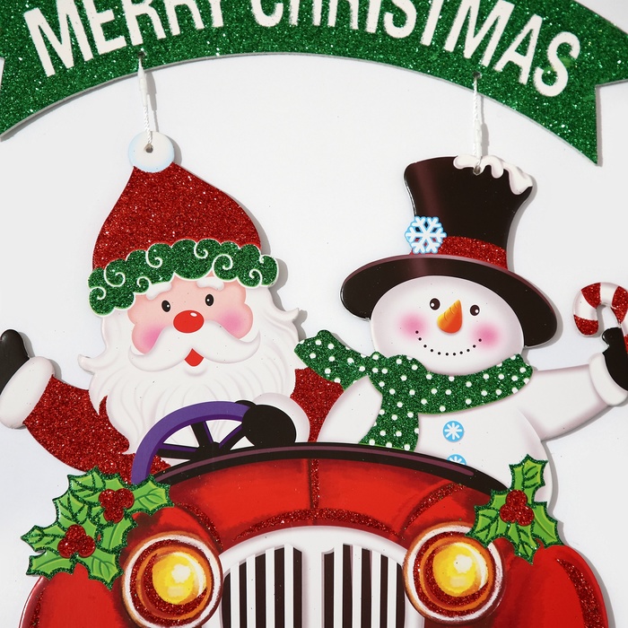 Новогоднее украшение настенное «Дед мороз и снеговик на автомобиле», подвеска, 40х34 см — Характеристики