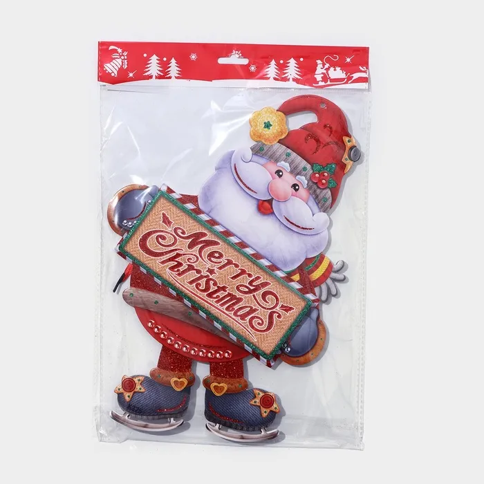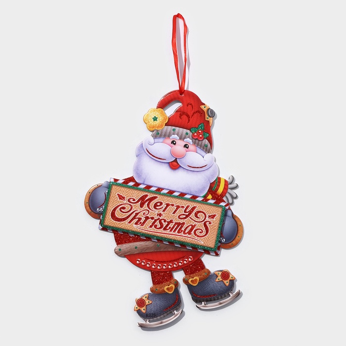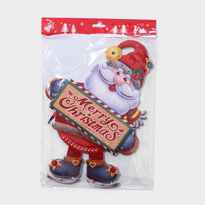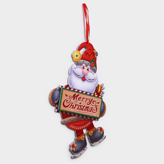 Новогоднее украшение настенное «Дедушка мороз на коньках», подвеска, 33,5х24,5 см — Характеристики