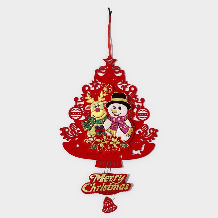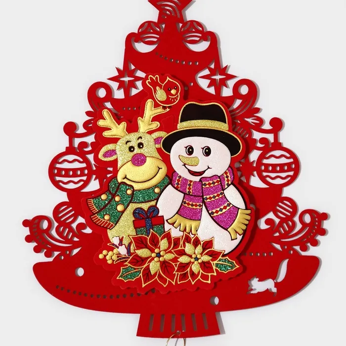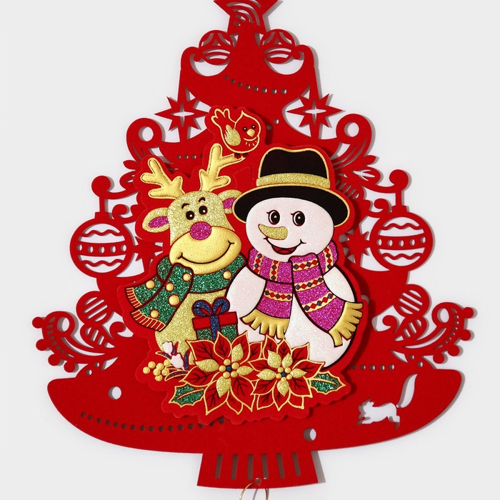 Новогоднее украшение настенное «Новогодня ёлка с друзьями», подвеска, 40,5х25,5 см — Характеристики