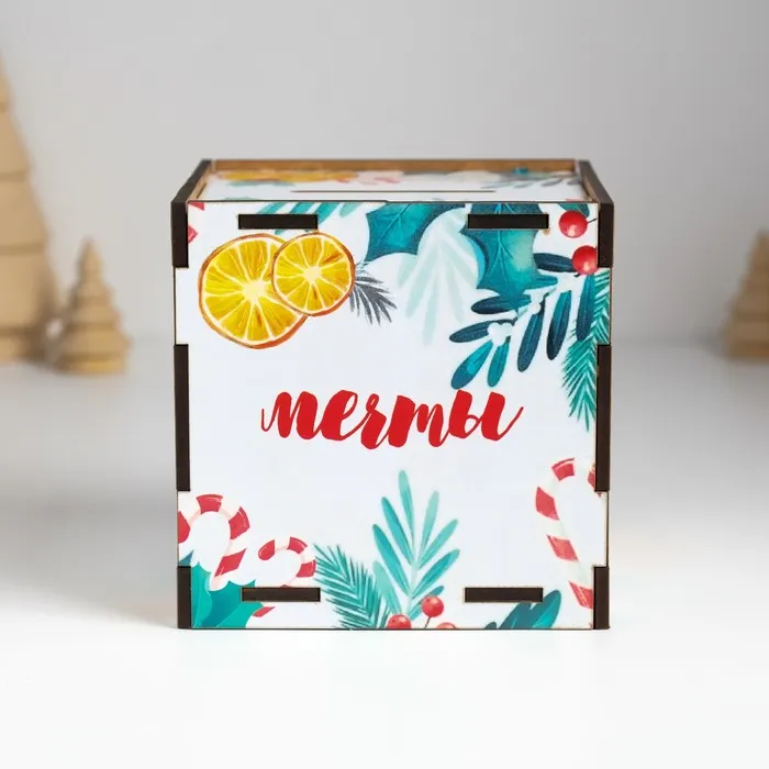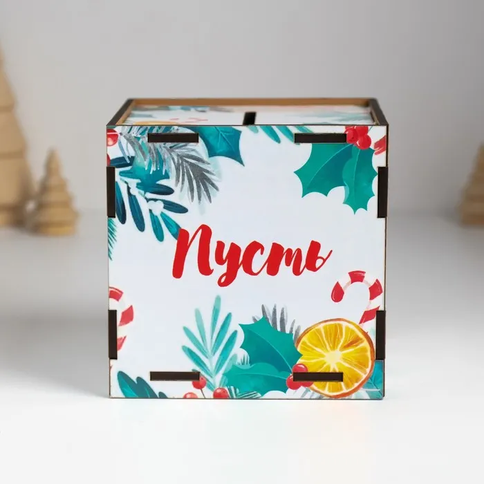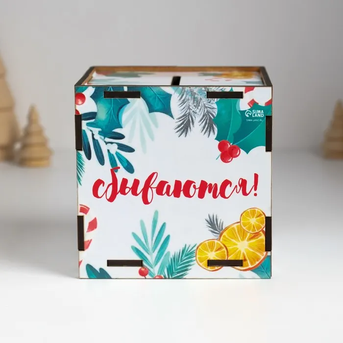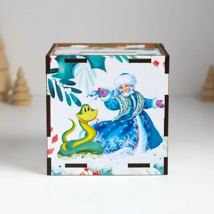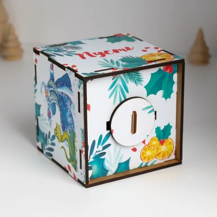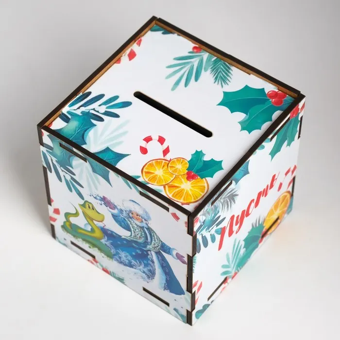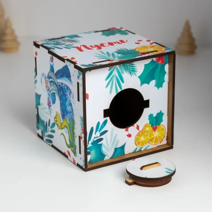Новогодняя деревянная копилка для денег «Змея. Пусть мечты сбываются», куб, с надписью, 10×10×10 см — Характеристики