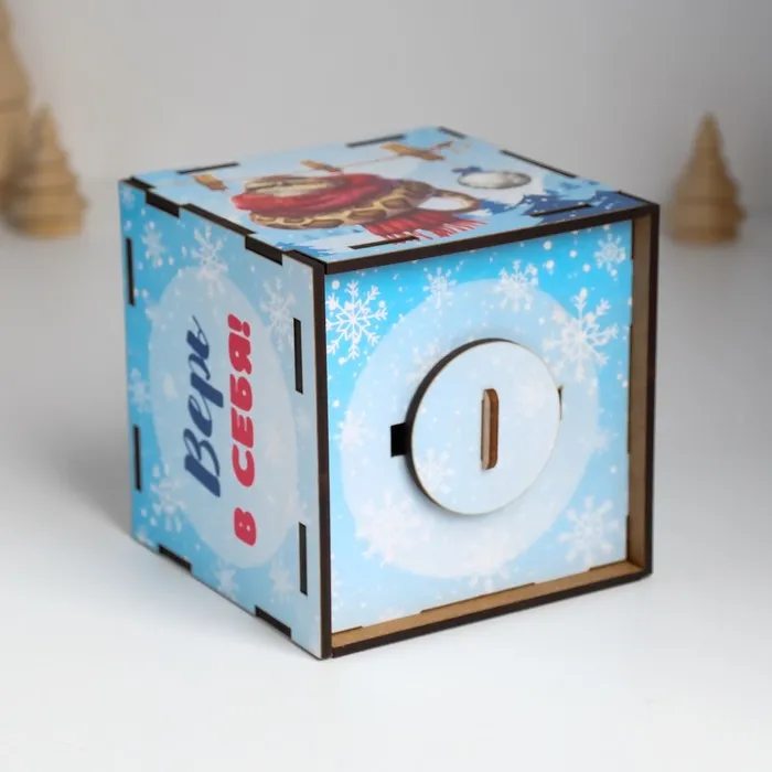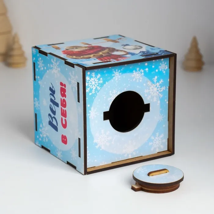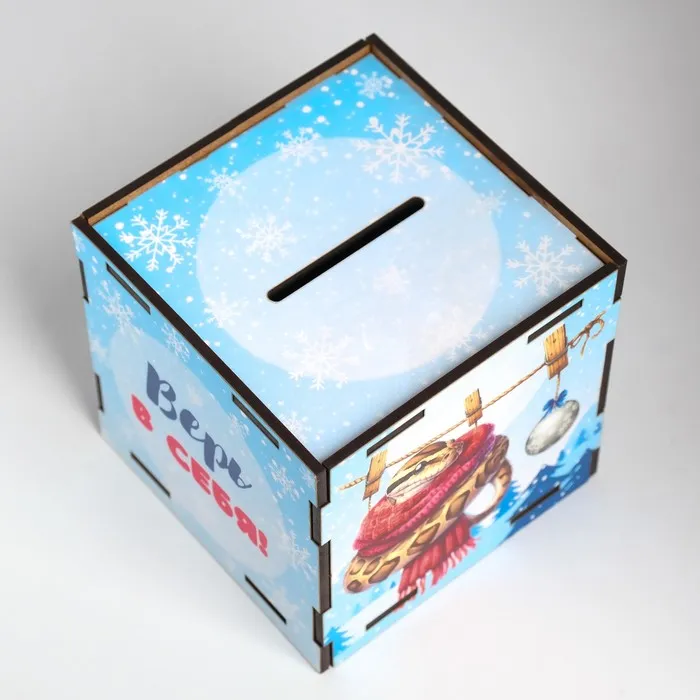 Новогодняя деревянная копилка для денег «Змея. Верь в себя», куб, с надписью, 10×10×10 см — Характеристики
