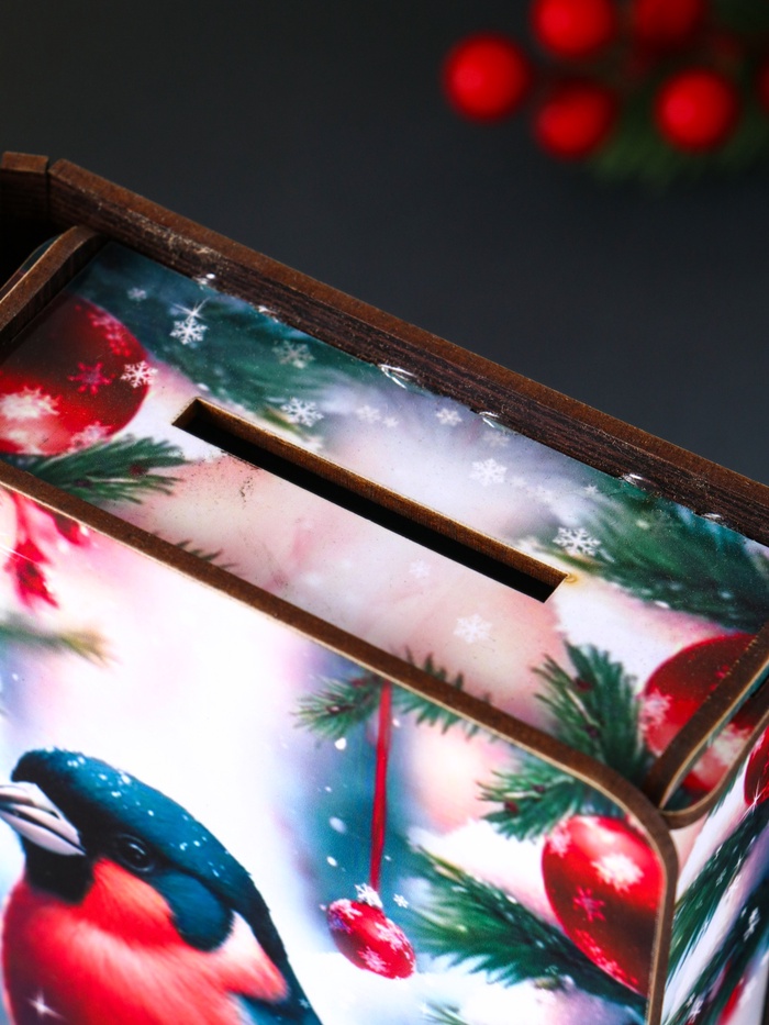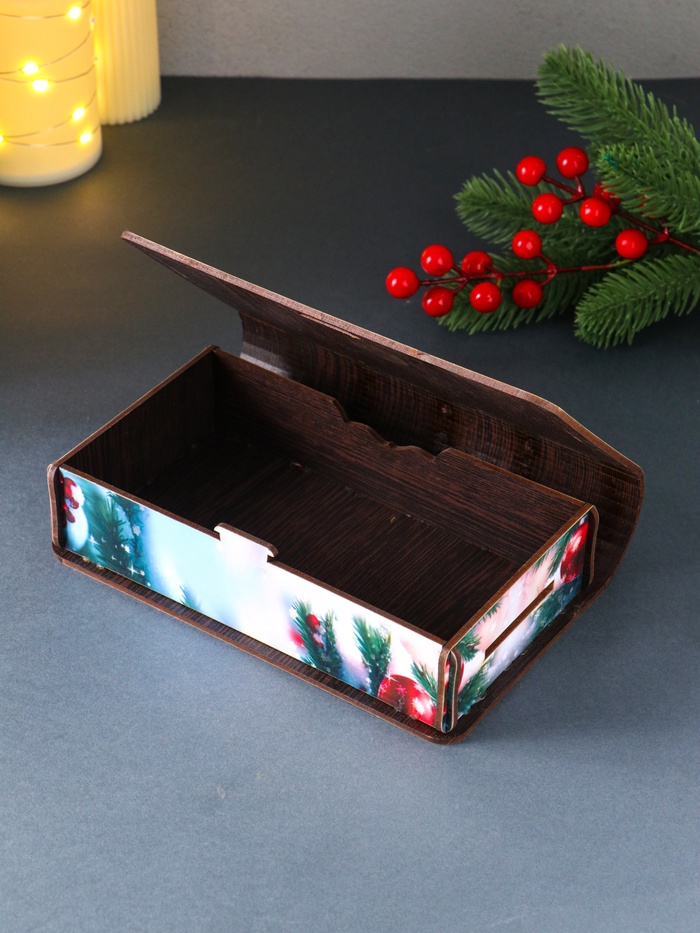 Шкатулка создана дарить радость. Её новогодний дизайн превращает процесс дарения в маленький ритуал, а получатель надолго сохранит приятные воспоминания. Это идеальное решение для упаковки новогоднего сюрприза, создания адвент-календаря или хранения рождественских украшений. Прочный материал гарантирует, что красота и атмосфера праздника останутся с вами на многие годы.