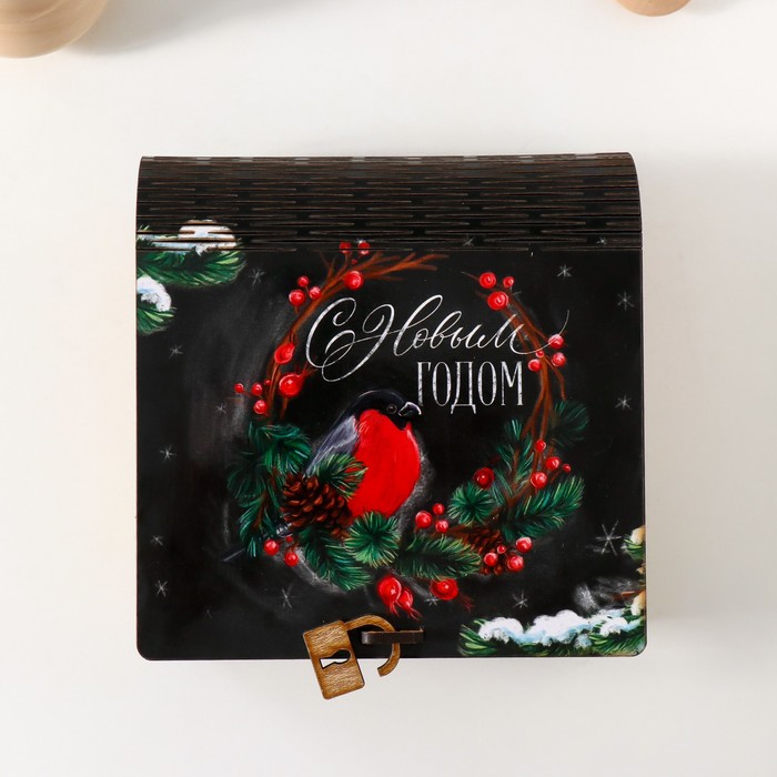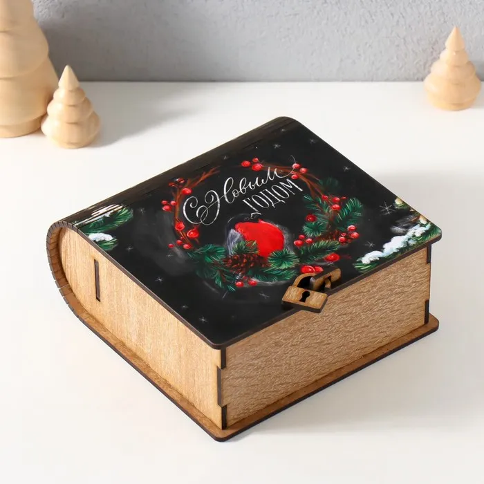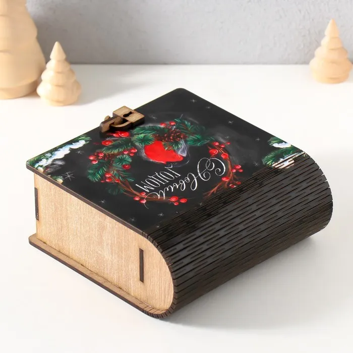 Новогодняя деревянная шкатулка-книга «Снегири» 14×14х6.5 см — Характеристики