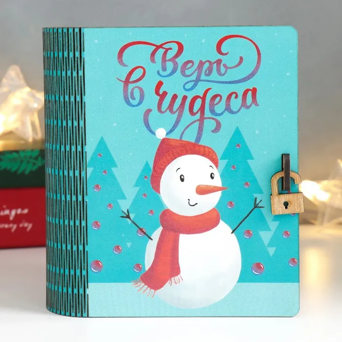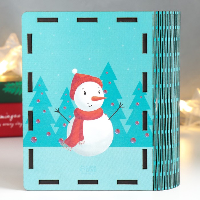 Новогодняя деревянная шкатулка-книга «Снеговик» 14×12х5 см — Характеристики