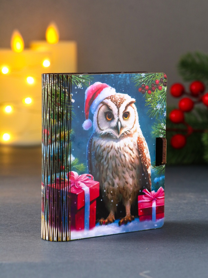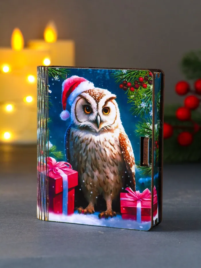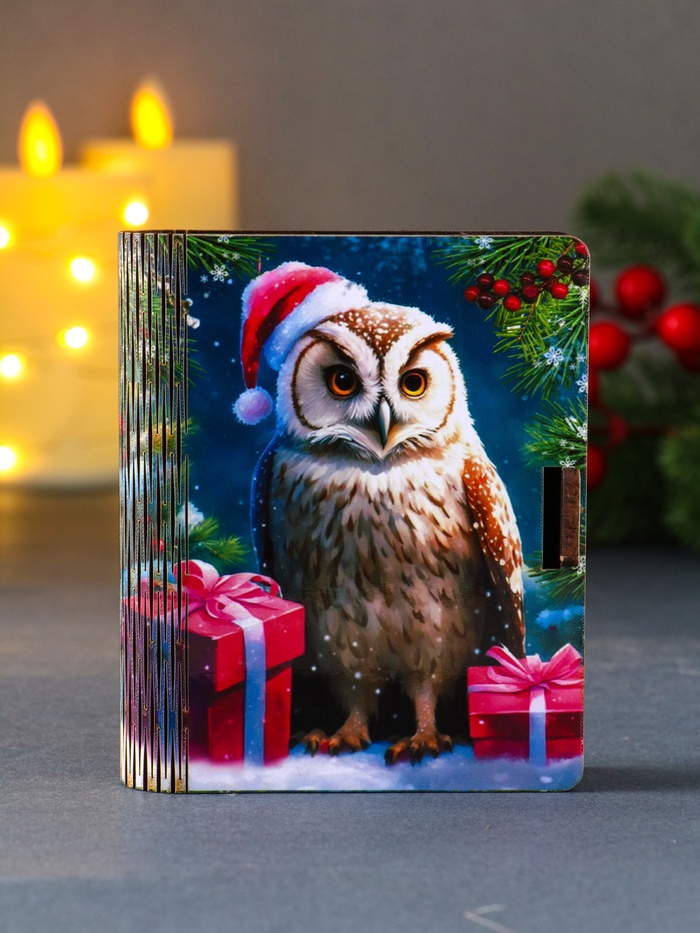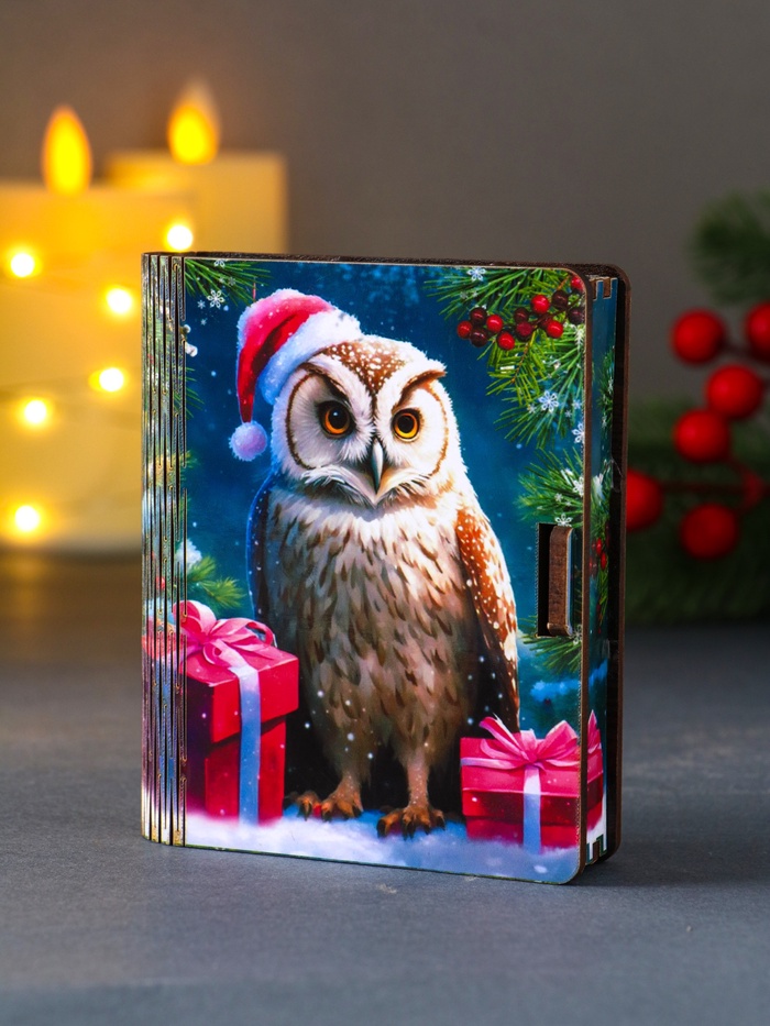 Новогодняя деревянная шкатулка-книга «Сова», для сертификатов, денег, 9.8×8.5×2 см — Характеристики