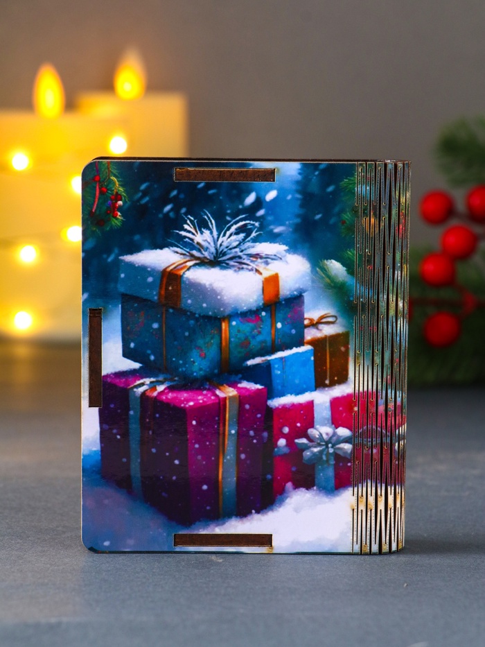 Эта праздничная шкатулка-книга — элегантный способ преподнести деньги или подарочный сертификат. Её сдержанный дизайн в новогодней тематике превращает практичный подарок в трогательный и запоминающийся жест. После праздников изящная коробочка останется у получателя как приятное напоминание и станет личным хранилищем для ценных мелочей.
