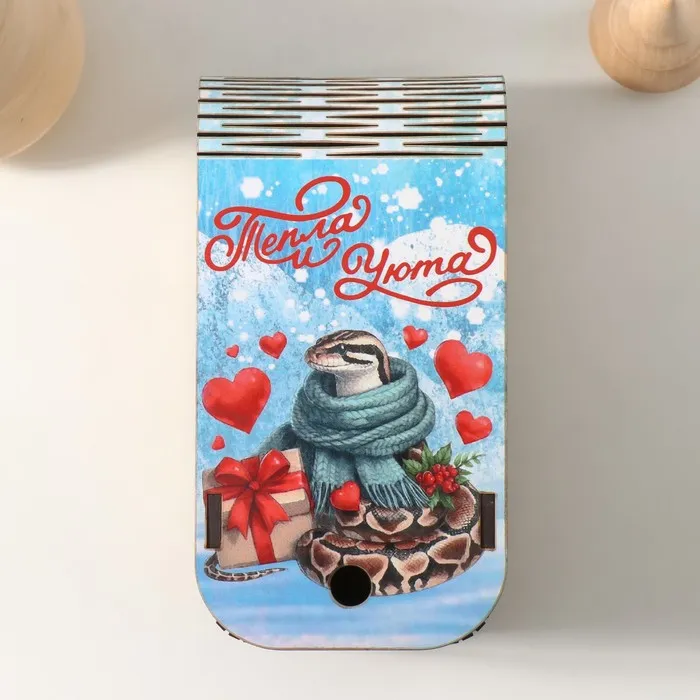 Новогодняя деревянная шкатулка-книга «Змея. Тепла и уюта» 13×7х4 см