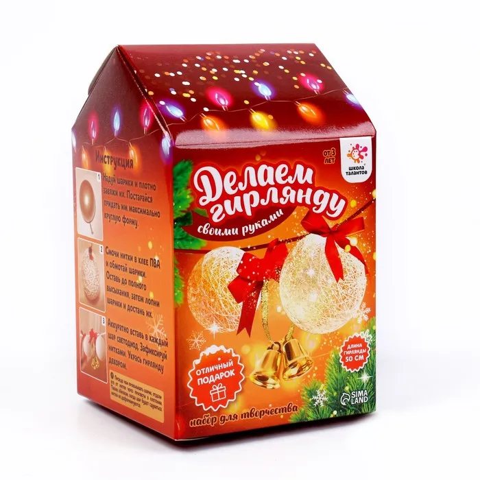 В серии наборов для творчества «Новогодняя гирлянда из ниток своими руками» представлено 5 видов различных гирлянд для изготовления своими руками.