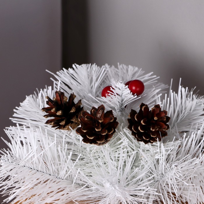 Новогодняя хвойная композиция на стол 20 см «Скандинавия премиум», заснеженная, декор шишки, ягоды — Характеристики