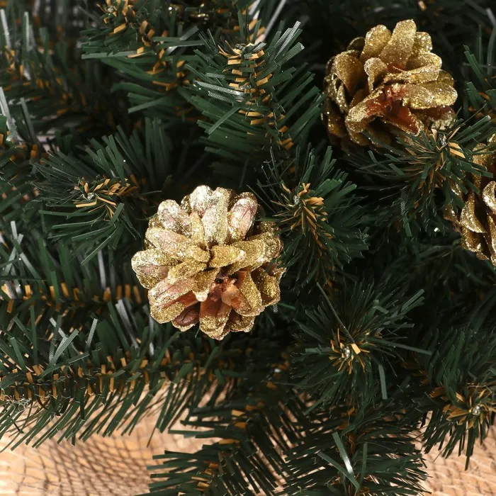 Новогодняя хвойная композиция на стол 25 см «Классическая» на дверь, на стену, декор шишки золото — Характеристики