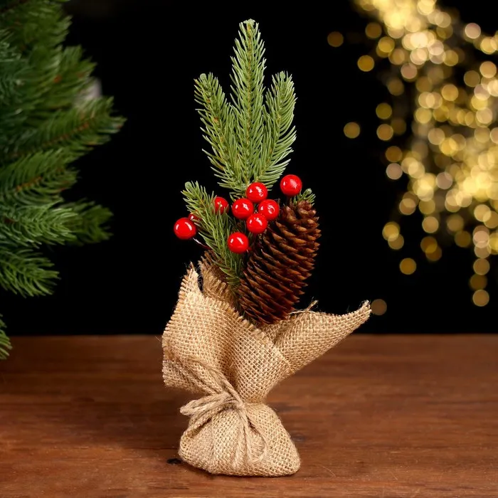 Новогодняя композиция состоит из натуральных материалов и идеально дополнит атмосферу праздника. Ей можно украсить праздничный стол, разместить на подоконниках или использовать для фотосессий.