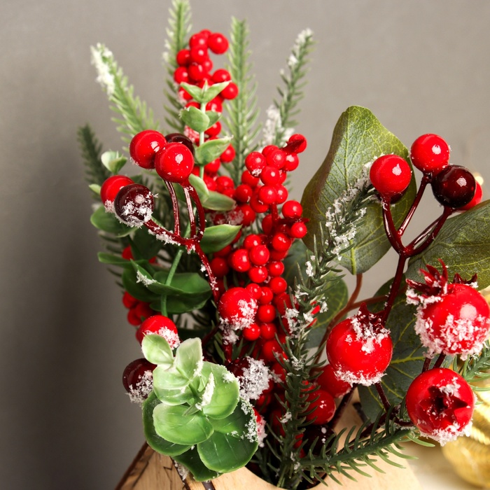 Новогодняя композиция в стиле барокко с элементами советского дизайна станет ярким украшением праздничного стола. Ее размеры 23×7,5 см позволяют создавать эффектные центральные украшения или дополнения к зимним декорациям. Красный цвет и стильные детали подчеркнут атмосферу торжества и создадут ощущение уюта и праздничной роскоши.