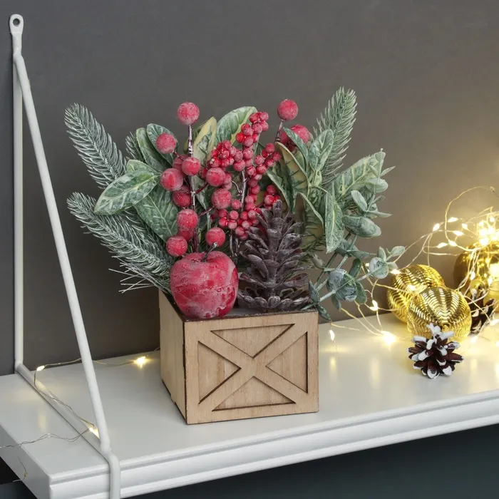 Эта новогодняя композиция станет центральным элементом праздничного декора. Ее аккуратный дизайн помогает создать атмосферу зимней сказки и уюта. Простая в использовании и долговечная, она прослужит вам не один сезон, радуя глаз в преддверии Нового года и рождественских праздников.