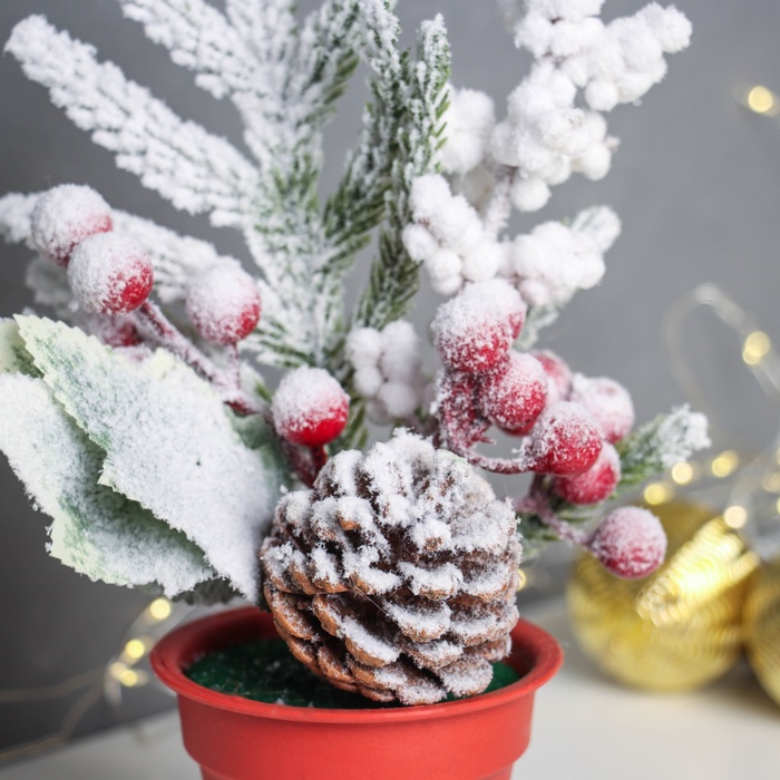 Новогодняя композиция на стол «Зимнее волшебство. Яркий праздник», в горшке, 24×7 см — Характеристики