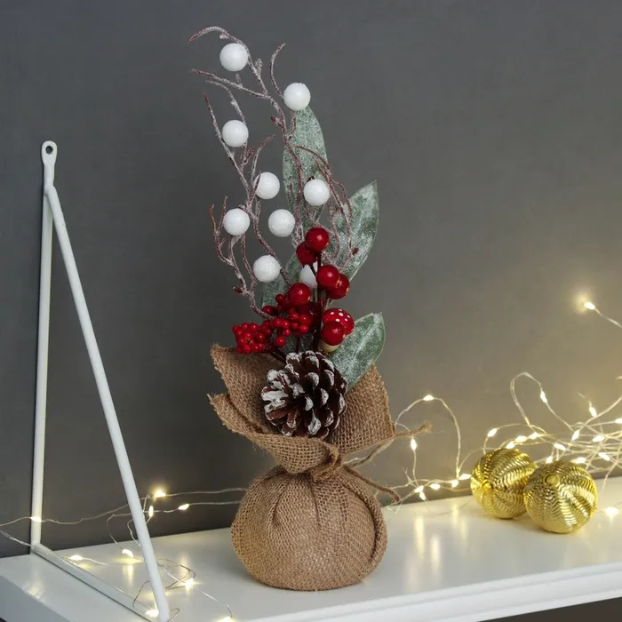 Новогодняя композиция на стол «Зимнее волшебство. Яркий праздник», в мешочке, 25×10 см — Характеристики