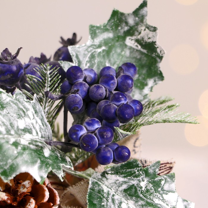 Новогодняя композиция на стол «Зимнее волшебство. Очарование» в мешочке, черника, шишка, 14 см — Характеристики
