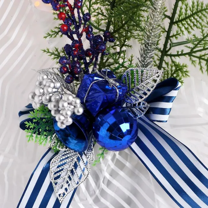 Новогодняя композиция на стол «Зимнее волшебство. Причуды», яблочки и веточки, 25 см, синий — Характеристики
