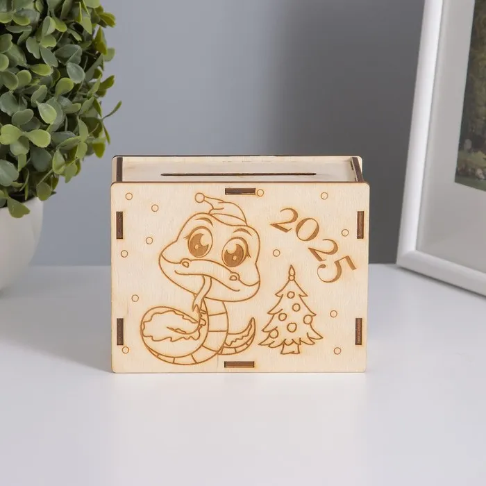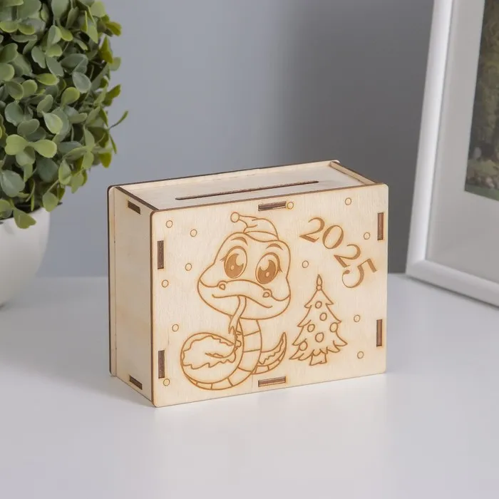 Новогодняя копилка для денег «Змейка с ёлочкой», для купюр, монет, дерево, 13×10×5 см — Характеристики