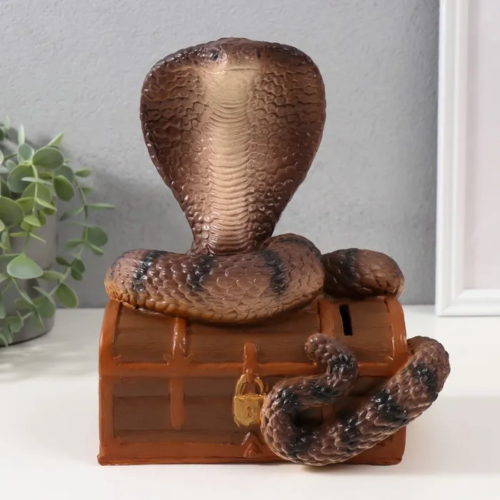 Новогодняя копилка "Кобра на сундуке " 20 х 17 х 12 см, коричневый — Характеристики