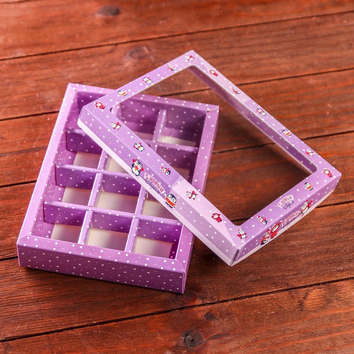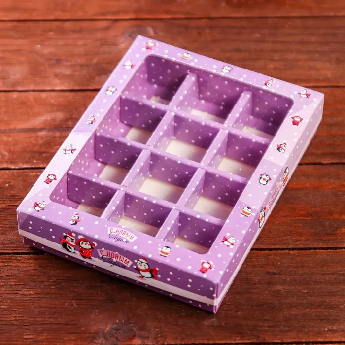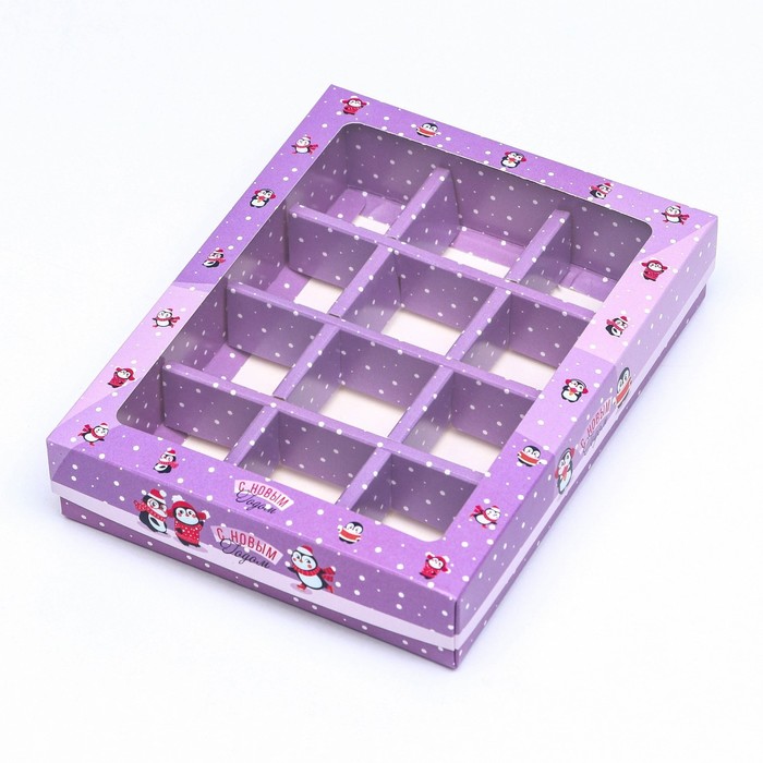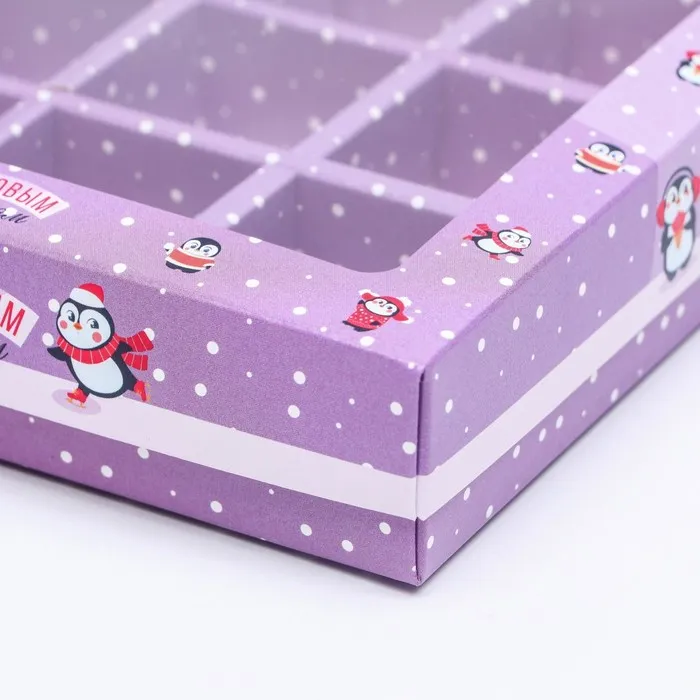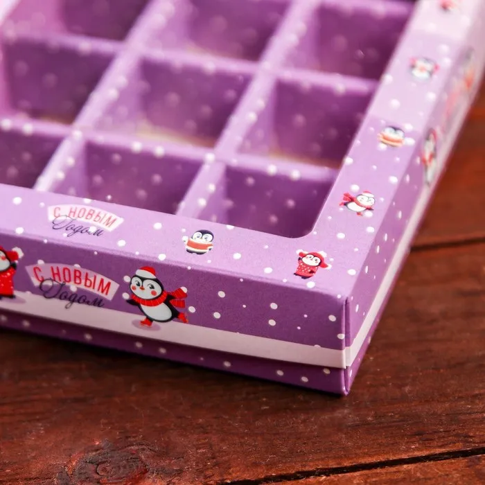 Новогодняя коробка - упаковка для конфет 12 шт. «Новогодний пингвин», 19×14.5×3.5 см — Характеристики