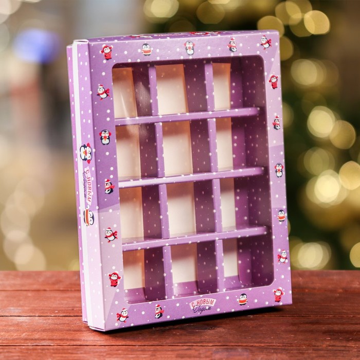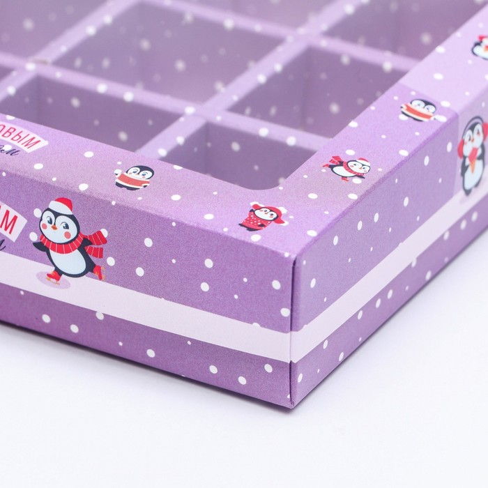 Новогодняя коробка - упаковка для конфет 12 шт. «Новогодний пингвин», 19×14.5×3.5 см