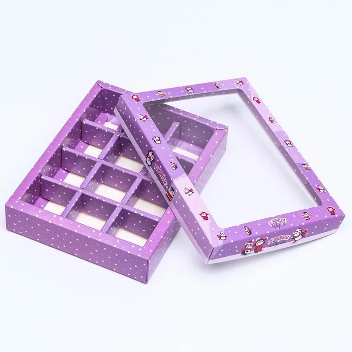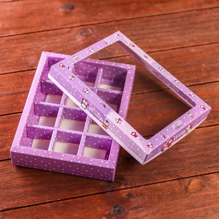 Размеры коробки позволяют упаковать 12 штук конфет, что делает ее удобной для использования в качестве подарка или для домашнего использования. Коробка изготовлена из качественного картона, который обеспечивает надежную защиту содержимого от внешних воздействий.