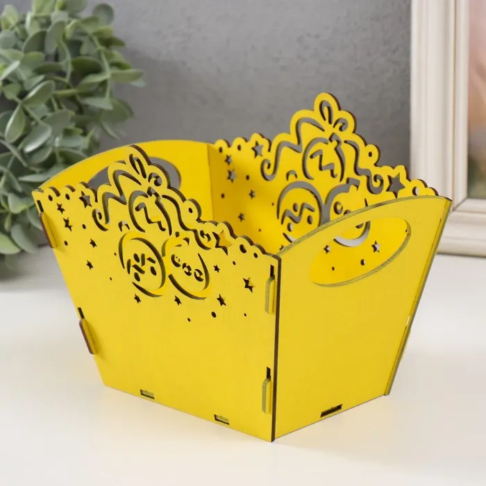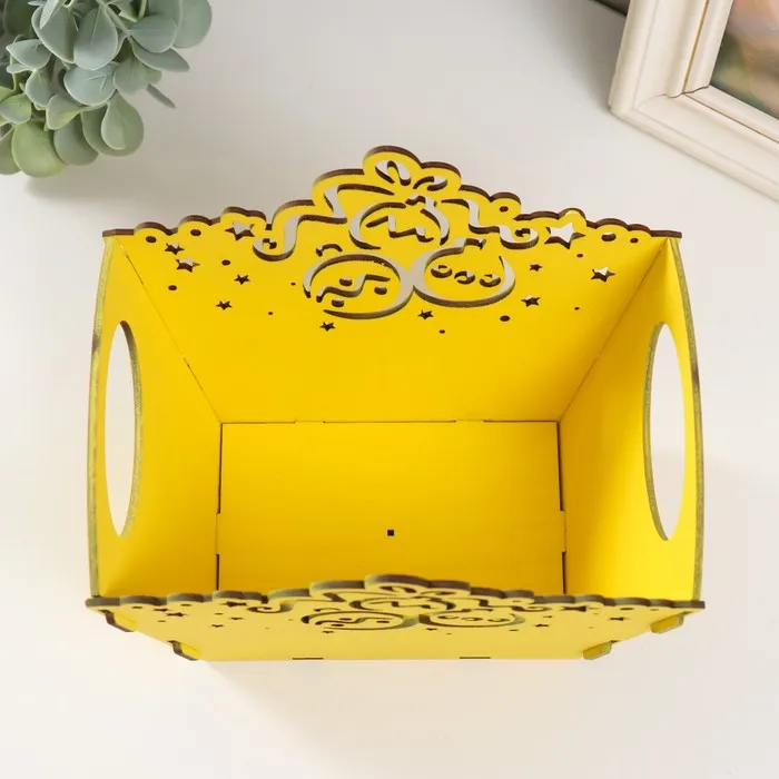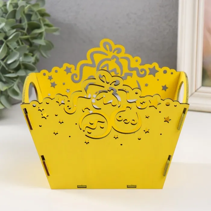 Новогодняя корзинка-шкатулка "Шарики" жёлтый 18х12х14,5 см (Новогодний набор 5 деталей) — Характеристики