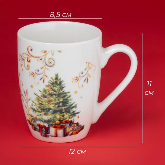 Новогодняя кружка для чая Доляна «Волшебное дерево», 300 мл, фарфор, цвет белый — Характеристики