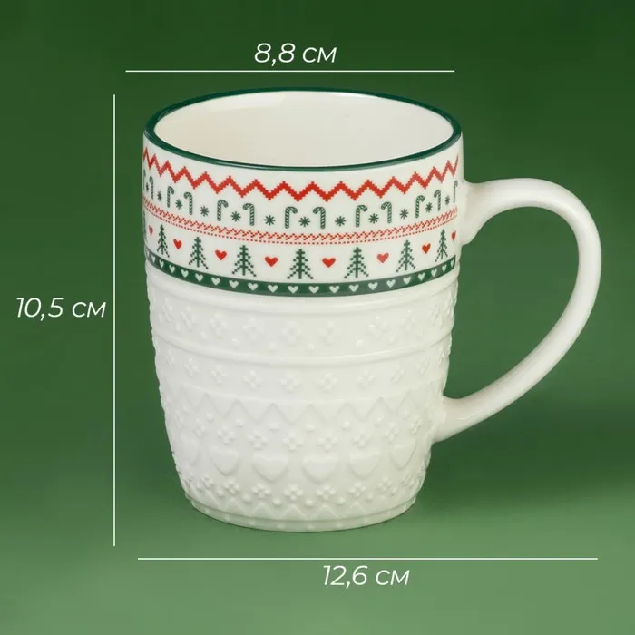 Новогодняя кружка Доляна «Вязаный свитер», 400 мл, 12,6×8,8×10,5 см — Характеристики