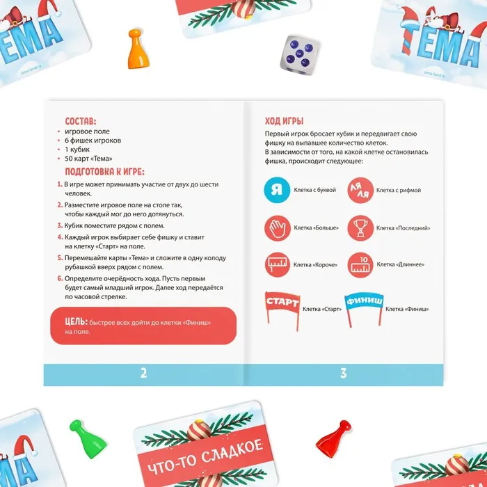 Новогодняя настольная игра «Мыслиум. На Новый год», кубик, фишки, 50 карт, 6+ — Характеристики