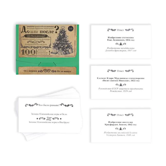 Новогодняя настольная игра «Новый год: Большая дурацкая викторина. До или после», 100 карт, 14+ — Характеристики