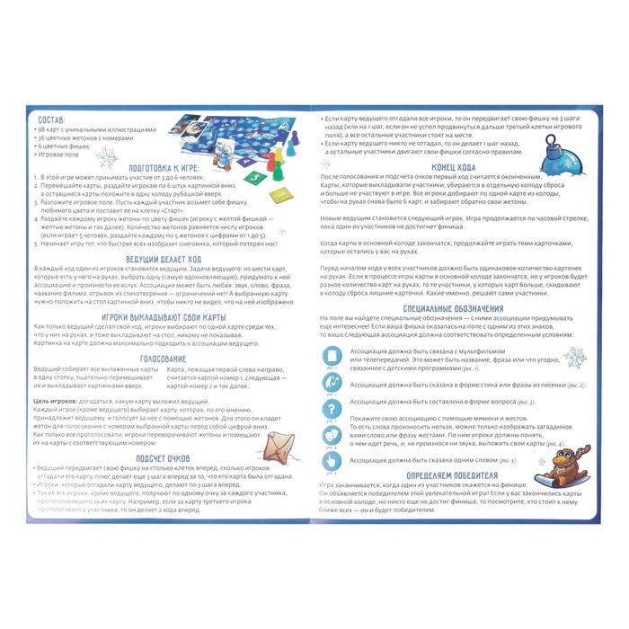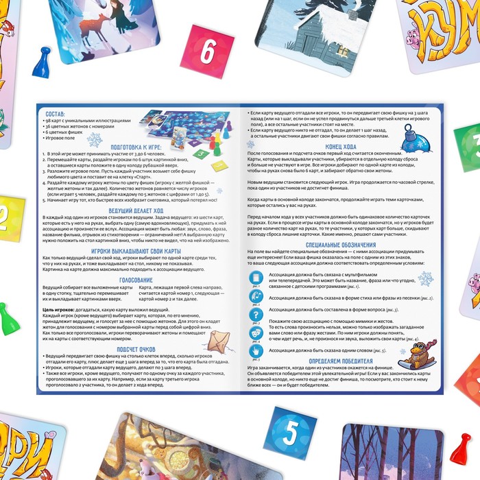 Сыграть в «Дримикум» — это отличная возможность собраться всей семьёй и встретить самый волшебный праздник, Новый год! Внутри вас ждёт 98 иллюстраций, вызывающих невероятный полёт фантазии. Научитесь понимать друг друга с полуслова или даже без них. Придумывайте ассоциации и пытайтесь понять, что загадали другие участники. А специальные обозначения на поле сделают игру ещё увлекательнее!