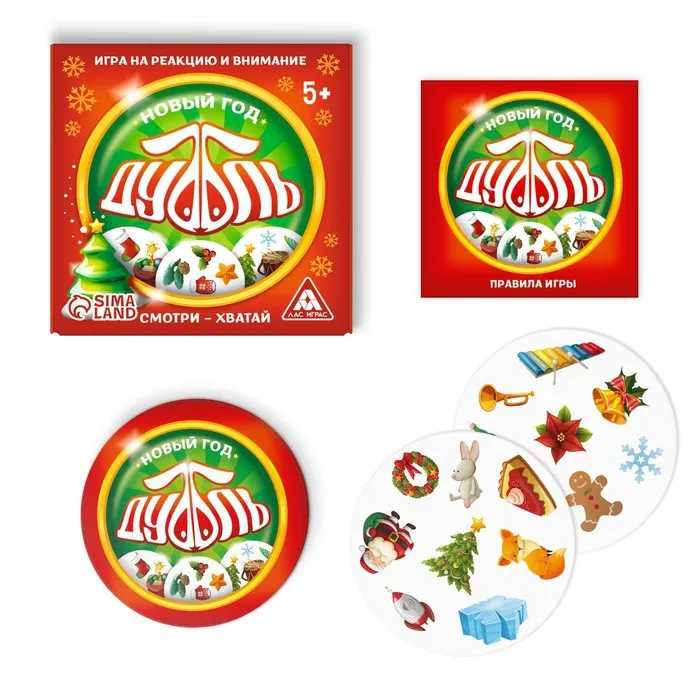 Новогодняя настольная игра «Новый год: Дуббль КОМБО», 4 в 1, 5+ — Характеристики