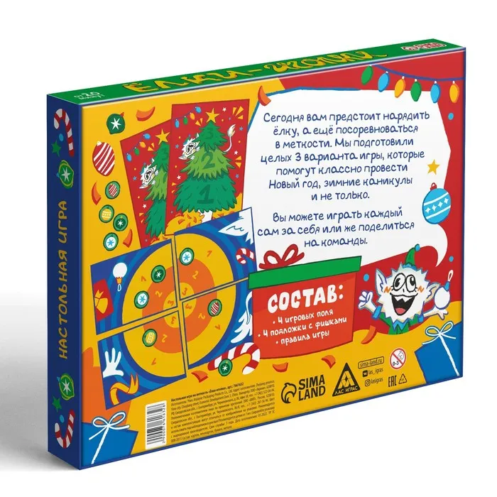 Вам предстоит нарядить ёлку, а ещё — посоревноваться в меткости. Мы подготовили целых 3 варианта игры, которые помогут классно провести Новый год, зимние каникулы и не только. Вы можете играть каждый сам за себя или же поделиться на команды.