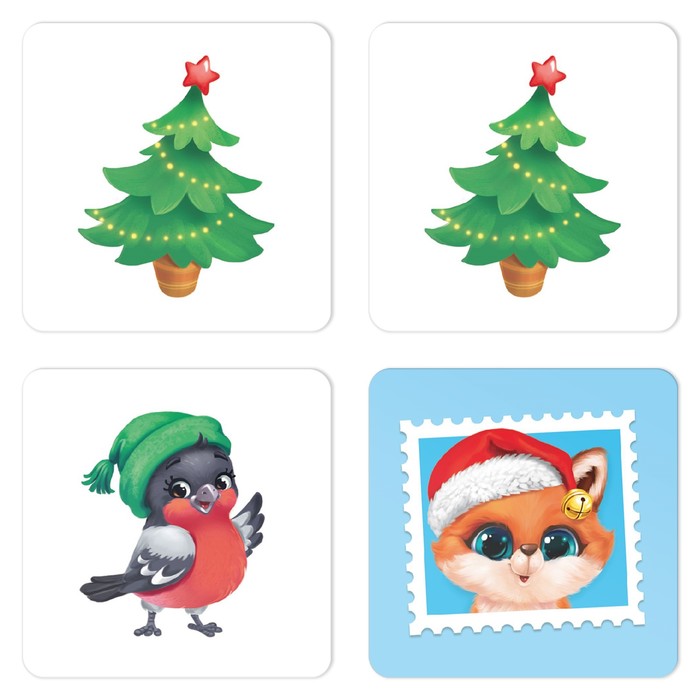 переворачиваете карточки с зимними картинками, находите парные и тренируйте память.