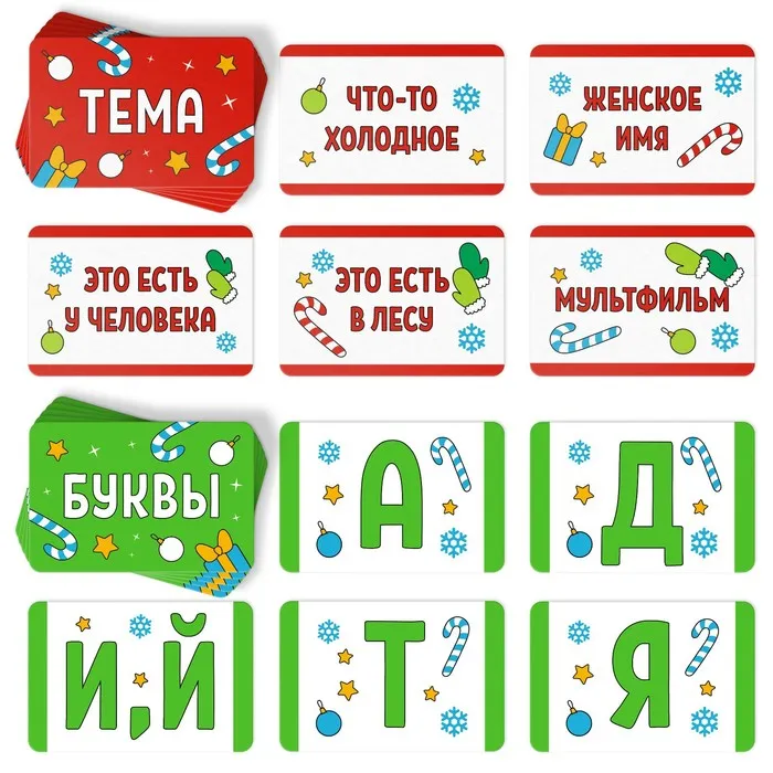 Первый участник вытягивает карточку из двух колод: с темами и буквами. После этого игрокам нужно быстрее всех назвать слово, начинающееся на указанную букву и соответствующее заданной теме. На некоторых картах указаны сразу две буквы. Участники могут назвать слово на любую из имеющихся у них.