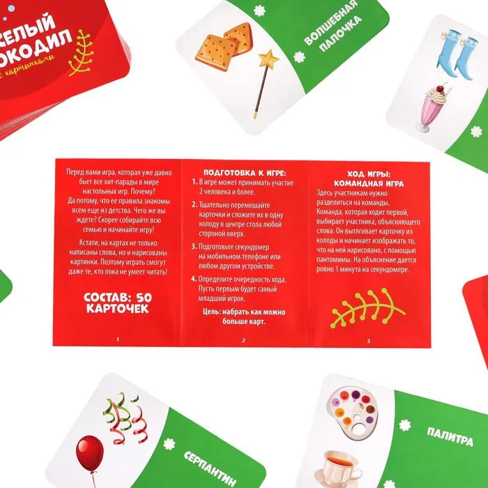 Эта игра уже давно бьёт все хит-парады в мире настольных игр. Почему? Да потому что её правила знакомы всем ещё из детства. Чего же вы ждёте? Скорее собирайте всю семью и начинайте игру! Кстати, на картах не только написаны слова, но и нарисованы картинки. Поэтому играть смогут даже те, кто пока не умеет читать.