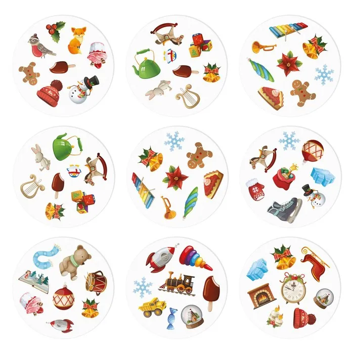 Это новогодняя игра сделает праздник незабываемым, а заодно проверит ваше внимание и реакцию! Внутри ждут карты с уникальным набором картинок, на каждой паре есть общее изображение. Ищите совпадения быстрее всех и побеждайте!