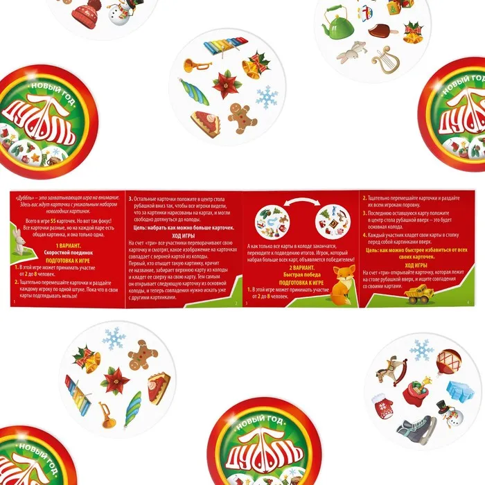 Новогодняя настольная игра «Новый год:Дуббль», 55 карт, 5+ — Характеристики